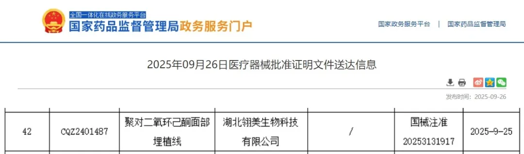 近日,斯坦德醫療器械成功助力湖北翎美生物科技有限公司(以下簡稱翎美生物)注冊的“聚對二氧環己酮面部埋植線”正式獲得國家藥品監督管理局(NMPA)三類醫療器械批準,注冊證編號為國械注準20253131917。這一里程碑事件標志著中國醫美行業在面部抗衰領域實現重大技術突破——翎美生物成為國內首家獲批面部適應癥魚骨線注冊證的企業,其產品以“雙針設計+一體壓印工藝”為核心創新點,重新定義了線性提升技術的安全性和有效性標準。