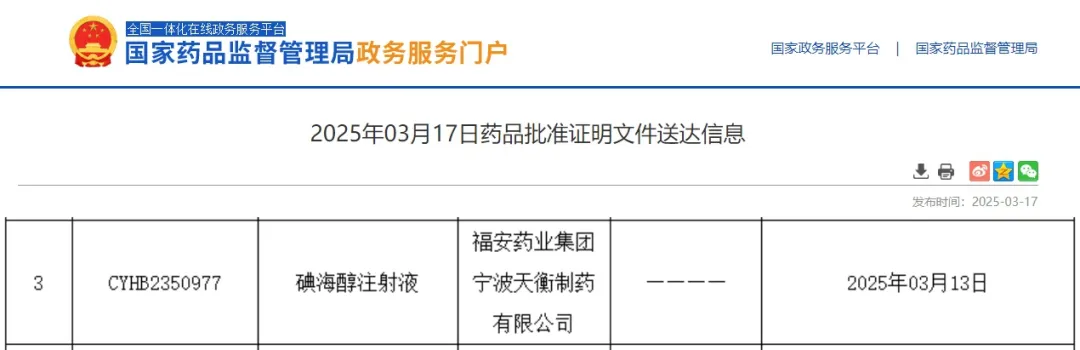 近日,斯坦德科創(chuàng)成功助力福安藥業(yè)集團(tuán)寧波天衡制藥有限公司(以下簡(jiǎn)稱(chēng)“寧波天衡”)申報(bào)的碘海醇注射液獲批上市。