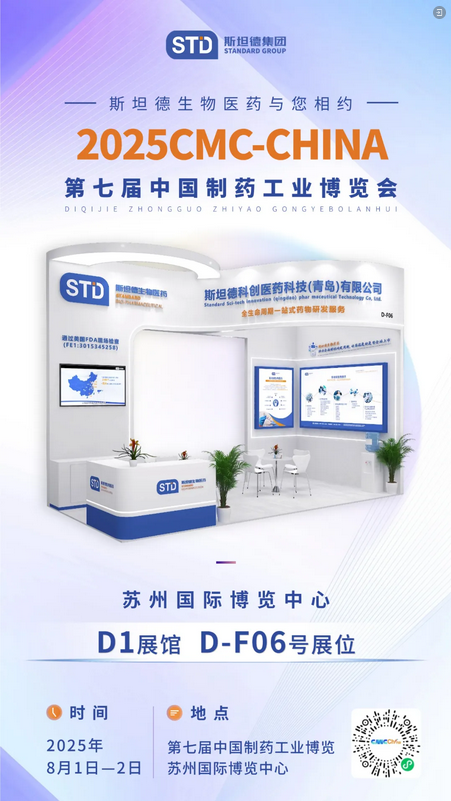 2025年8月1-2日,2025CMC-CHINA第七屆中國制藥工業博覽會將于蘇州國際博覽中心盛大啟幕。斯坦德生物醫藥作為行業領先的藥物研發機構受邀參展,我們將在D1展館D-F06號展位攜專業的藥物研發能力特裝亮相,期待與各位醫藥伙伴共話行業前沿,共謀行業發展。這個八月,姑蘇相約!