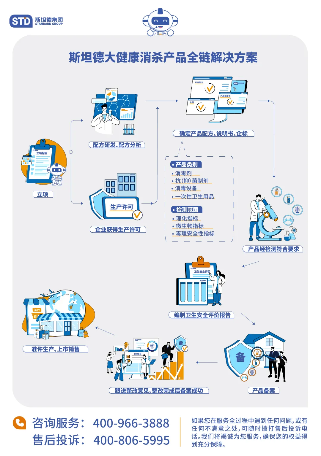 斯坦德集團作為專業的消毒產品第三方分析檢測與研發機構,擁有CMA資質認定及CNAS認可資格,依據IS017025和IS09001標準嚴格管理實驗室。旗下大健康事業部致力于為客戶提供配方研發、配方分析、產品檢測及備案的一站式服務,業務領域范圍覆蓋消毒劑、消毒設備、抗(抑)菌制劑以及一次性使用衛生用品檢測。