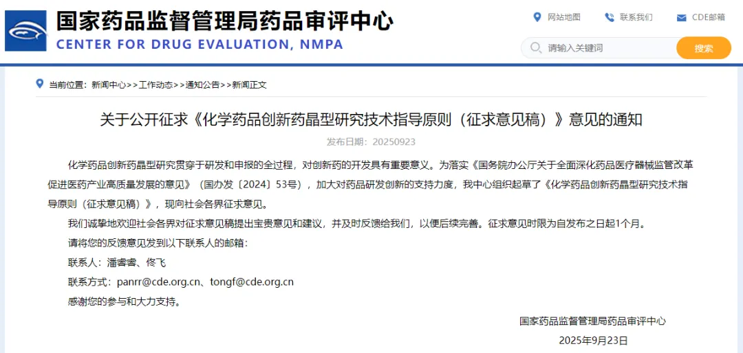 附件(文末“閱讀原文”中可下載)1.《化學(xué)藥品創(chuàng)新藥晶型研究技術(shù)指導(dǎo)原則(征求意見稿)》